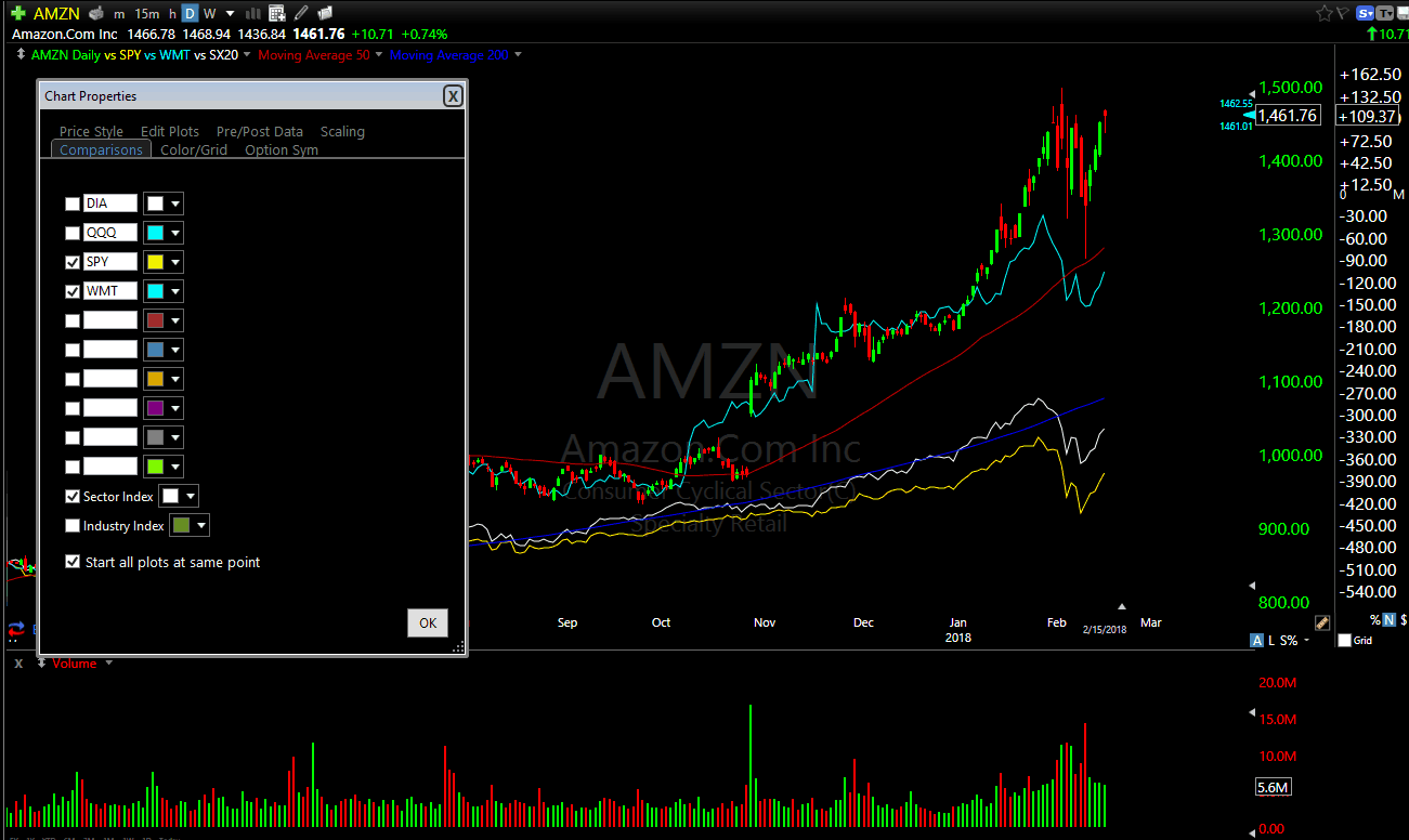 See in the image below, how the main stock indexes are presets that can be turned on and off, saving time, but the feature I love most is the checkbox for Sector/Industry symbols. On other charting platforms, this can be tricky, as industry index symbols can vary from platform to platform, forcing you to read through documentation or use the symbol search to figure it out. The checkbox mitigates all of that.